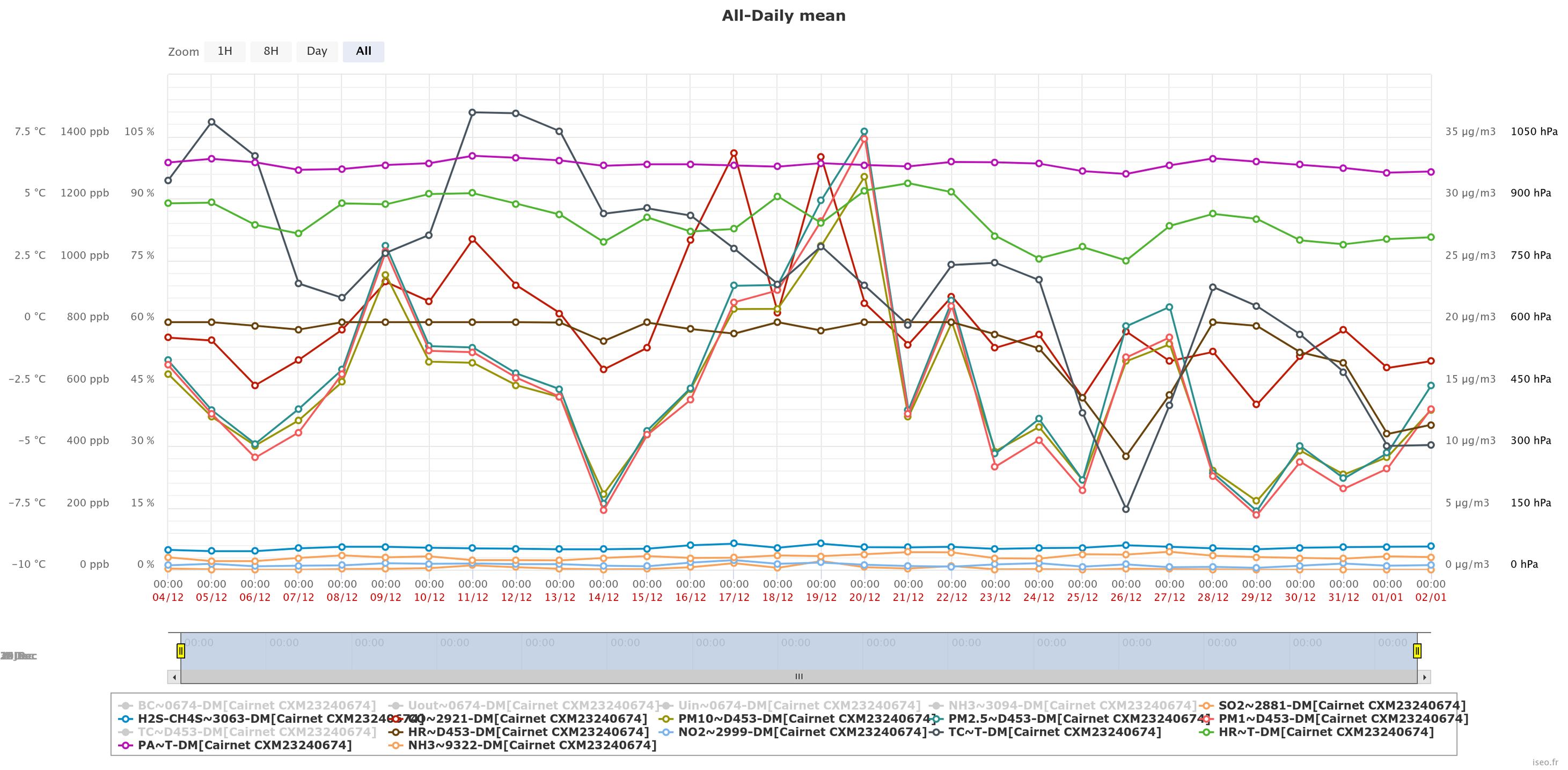 Водночас фіксувалися незначні середньодобові перевищення гранично допустимих концентрацій SO₂ (діоксид сірки) у 2/31 дня, PM₂.₅ (дрібнодисперсний пил) у 3/31 дня, NO₂ (діоксиду азоту) у 3/31 дня. (Графіки додаються).