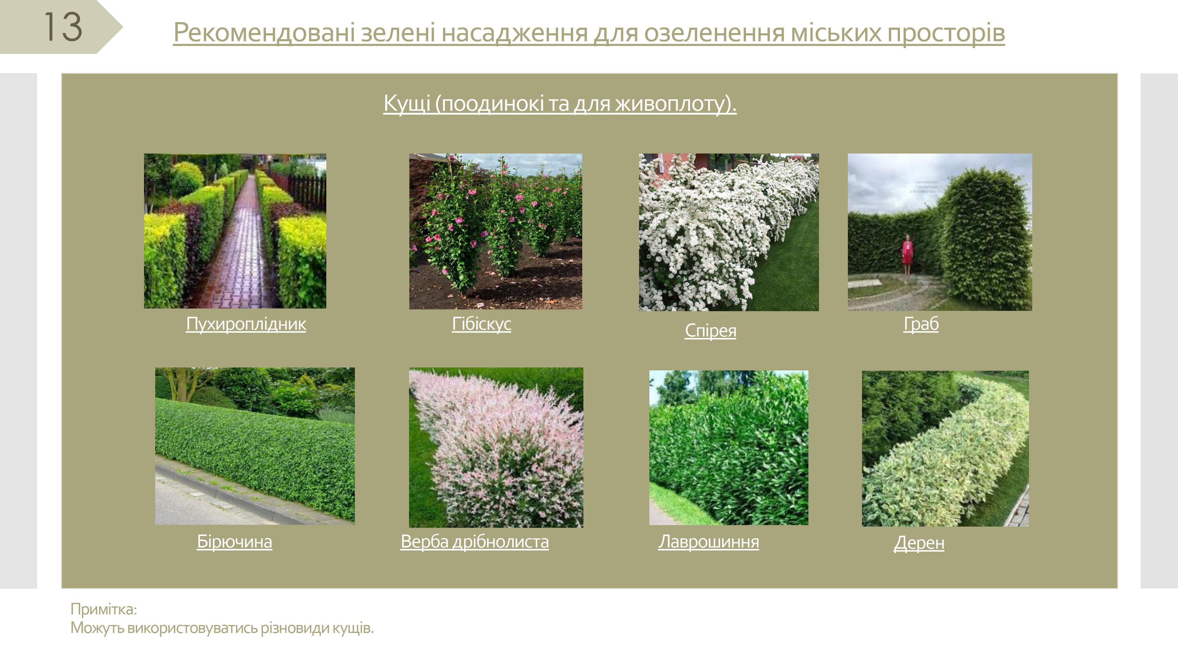 3.7. Озеленення прилеглої території виконується на основі схеми відповідно до Порядку догляду та збереження зелених насаджень на території Хмельницької міської територіальної громади. Для озеленення використовуються високорослі дерева та кущі листяного виду, а для створення ландшафтного дизайну зелених зон – багаторічні декоративні злакові рослини та трави.