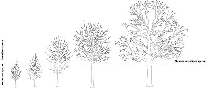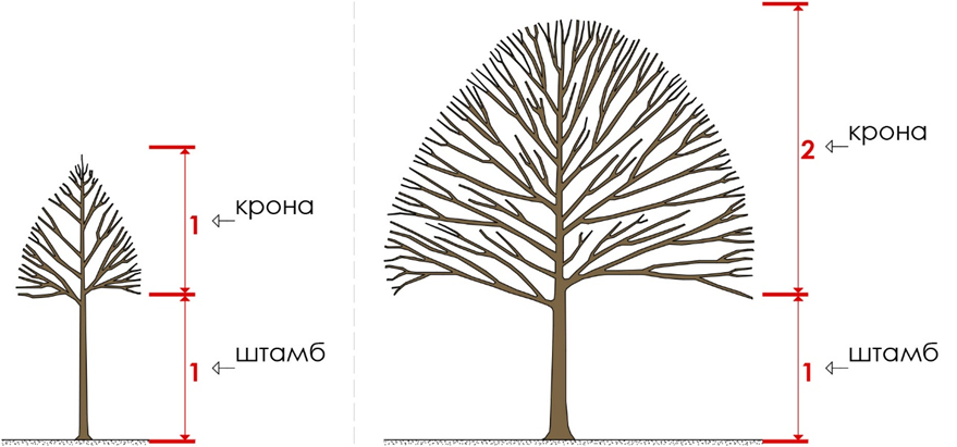 - висота визначається залежно від особливих характеристик виду дерева;