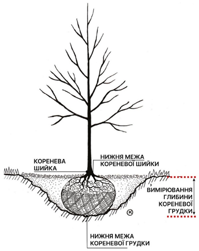 - коренева шийка повинна бути видима над кореневою грудкою;