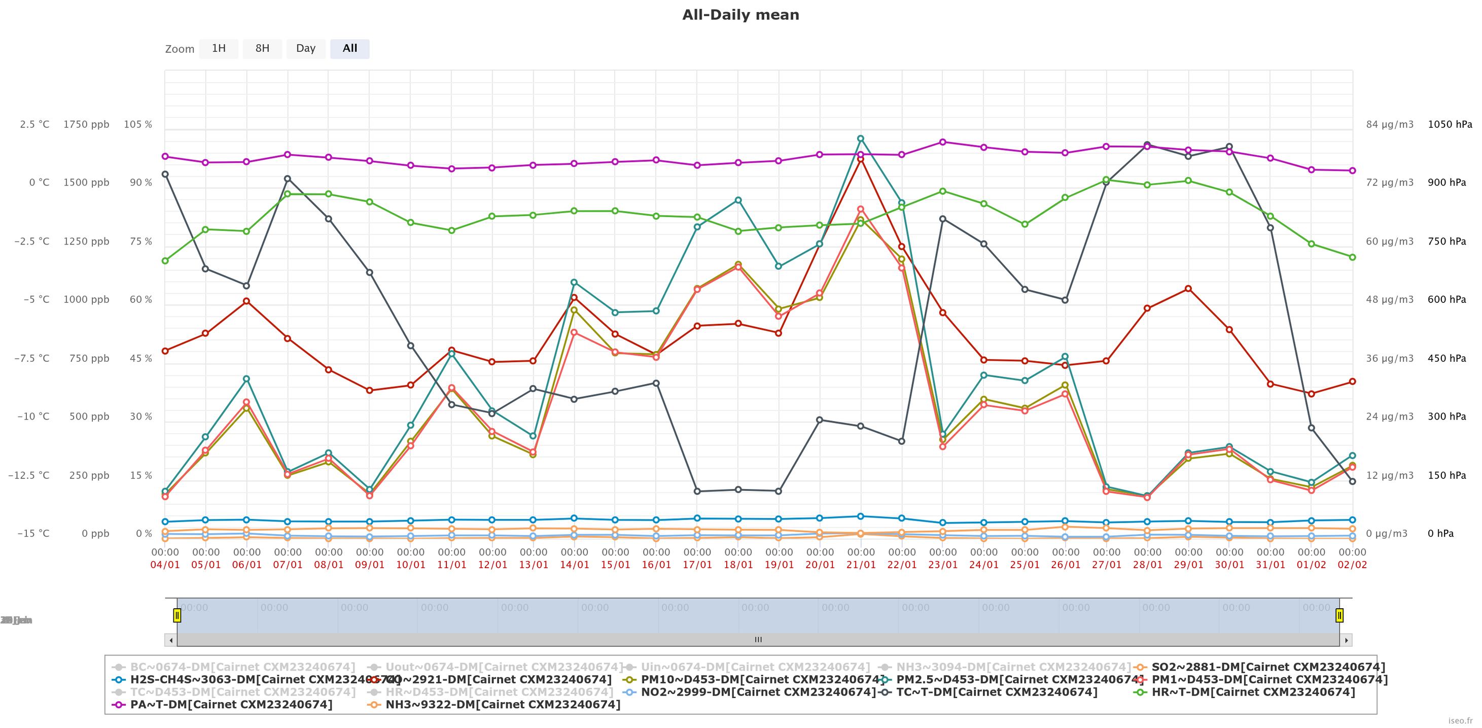 Водночас фіксувалися незначні середньодобові перевищення гранично допустимих концентрацій SO₂ (діоксид сірки) у 1/31 дня, PM₁₀ (дрібнодисперсний пил) у 4/31 дня, PM₂.₅ (дрібнодисперсний пил) у 15/31 дня, NO₂ (діоксиду азоту) у 4/31 дня.