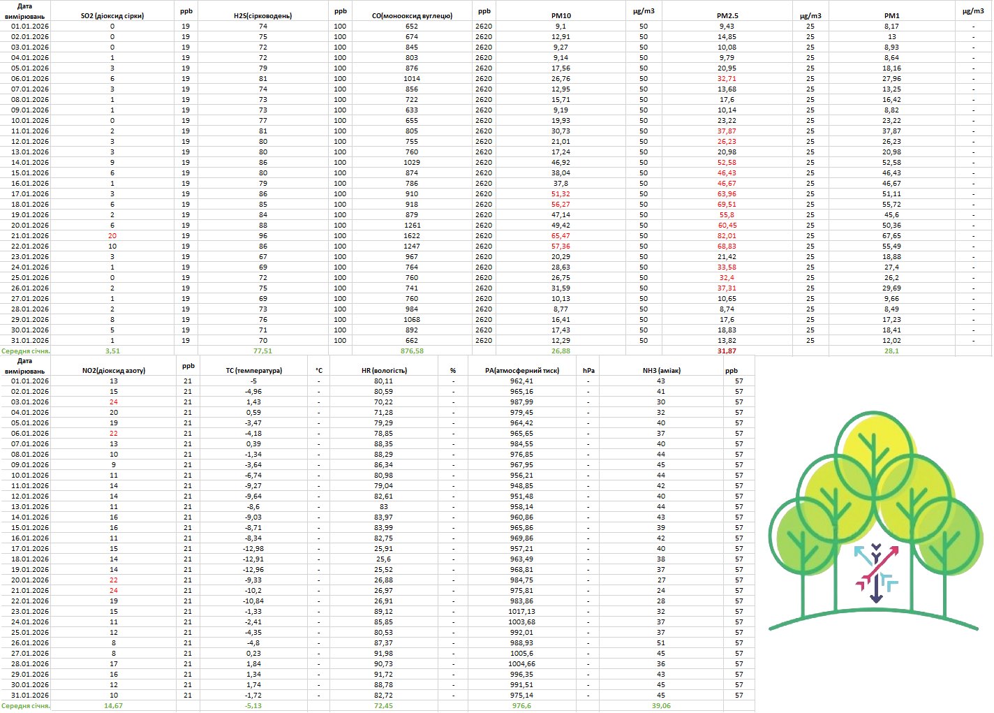 Крім того, за показником PM₂.₅ зафіксовано перевищення середньомісячної гранично допустимої концентрації: при нормативному значенні 25 мкг/м³ фактичний середньомісячний рівень становив 31,87 мкг/м³. (Графіки додаються).