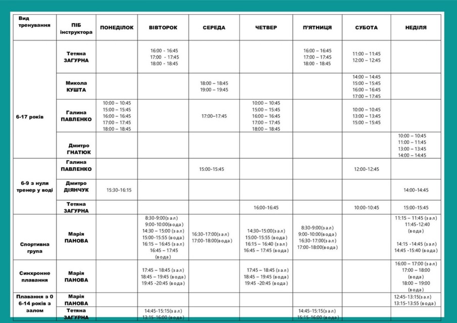 Головна / Новини / Басейн СКЦ «Плоскирів» - старт набору та оновлений графік занять /