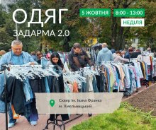 У неділю, 5 жовтня, з 8:00 до 13:00 (або поки вистачить речей) у сквері імені Івана Франка відбудеться акція «Одяг задарма 2.0».