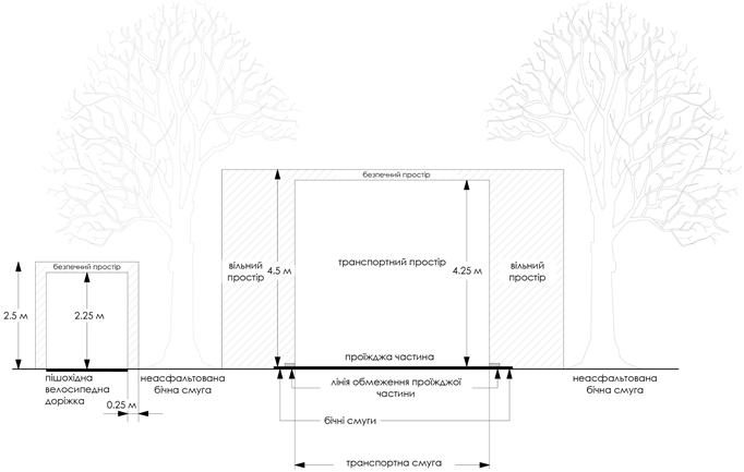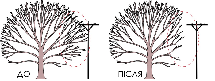- необхідно дотримуватися відстані між проєктованим деревом та наявною інфраструктурою, відповідно до Правил утримання зелених насаджень у населених пунктах, затверджених Наказом Міністерства будівництва, архітектури та житлово-комунального господарства України від 10.04.2006р. №105 (додатки 5, 6, 7, 8 до Порядку);