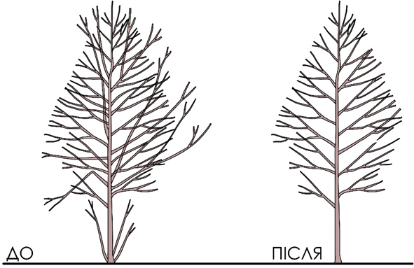 - крона повинна бути збалансованою та гілкуватися з усіх сторін по стовбуру дерева;